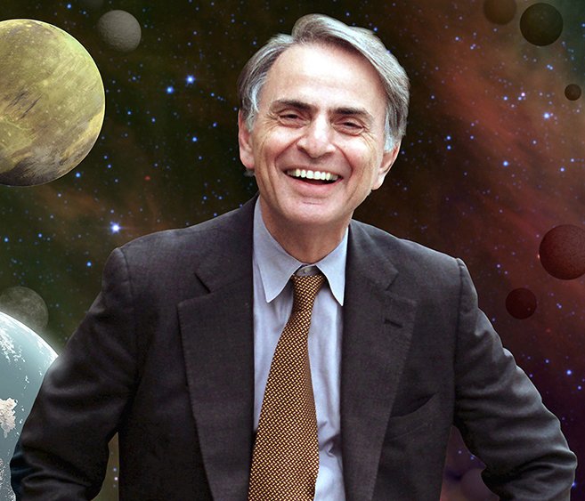 Carl Edward Sagan (Nueva York, Estados Unidos, 9 de noviembre de 1934-Seattle, Estados Unidos, 20 de diciembre de 1996) fue un astrónomo, astrofísico, cosmólogo, astrobiólogo, escritor y divulgador científico estadounidense. Fue un defensor del pensamiento escéptico científico y del método científico, pionero de la exobiología, promotor de la búsqueda de inteligencia extraterrestre a través del Proyecto SETI. Impulsó el envío de mensajes a bordo de sondas espaciales, destinados a informar a posibles civilizaciones extraterrestres acerca de la cultura humana. Mediante sus observaciones de la atmósfera de Venus, fue de los primeros científicos en estudiar el efecto invernadero a escala planetaria. En la Universidad Cornell, Carl Sagan fue el primer científico en ocupar la Cátedra David Duncan de Astronomía y Ciencias del Espacio, creada en 1976, y fue director del Laboratorio de Estudios Planetarios.